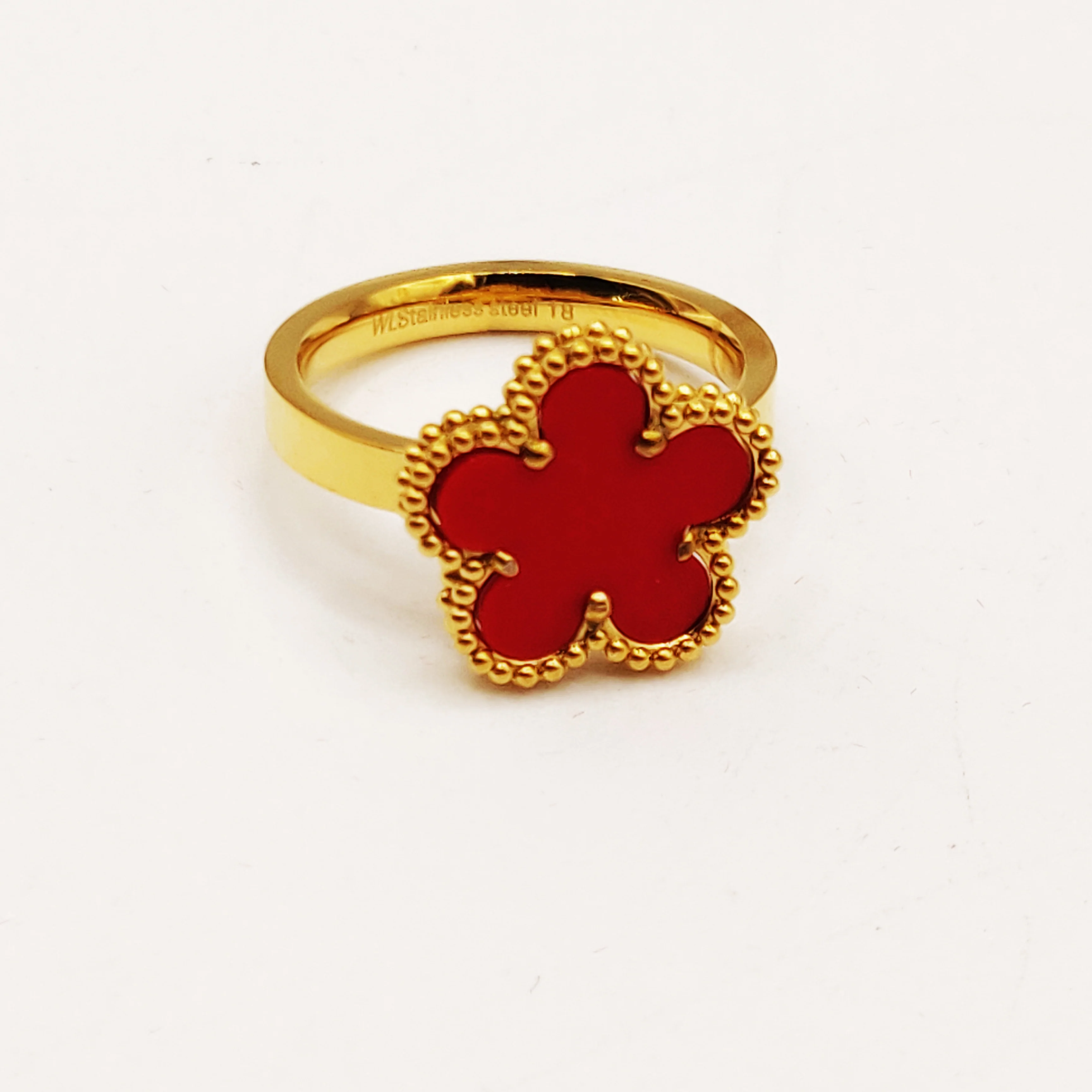 Bague Marguerites Dorées et Rouges Tour Perles d'imitation Luxe