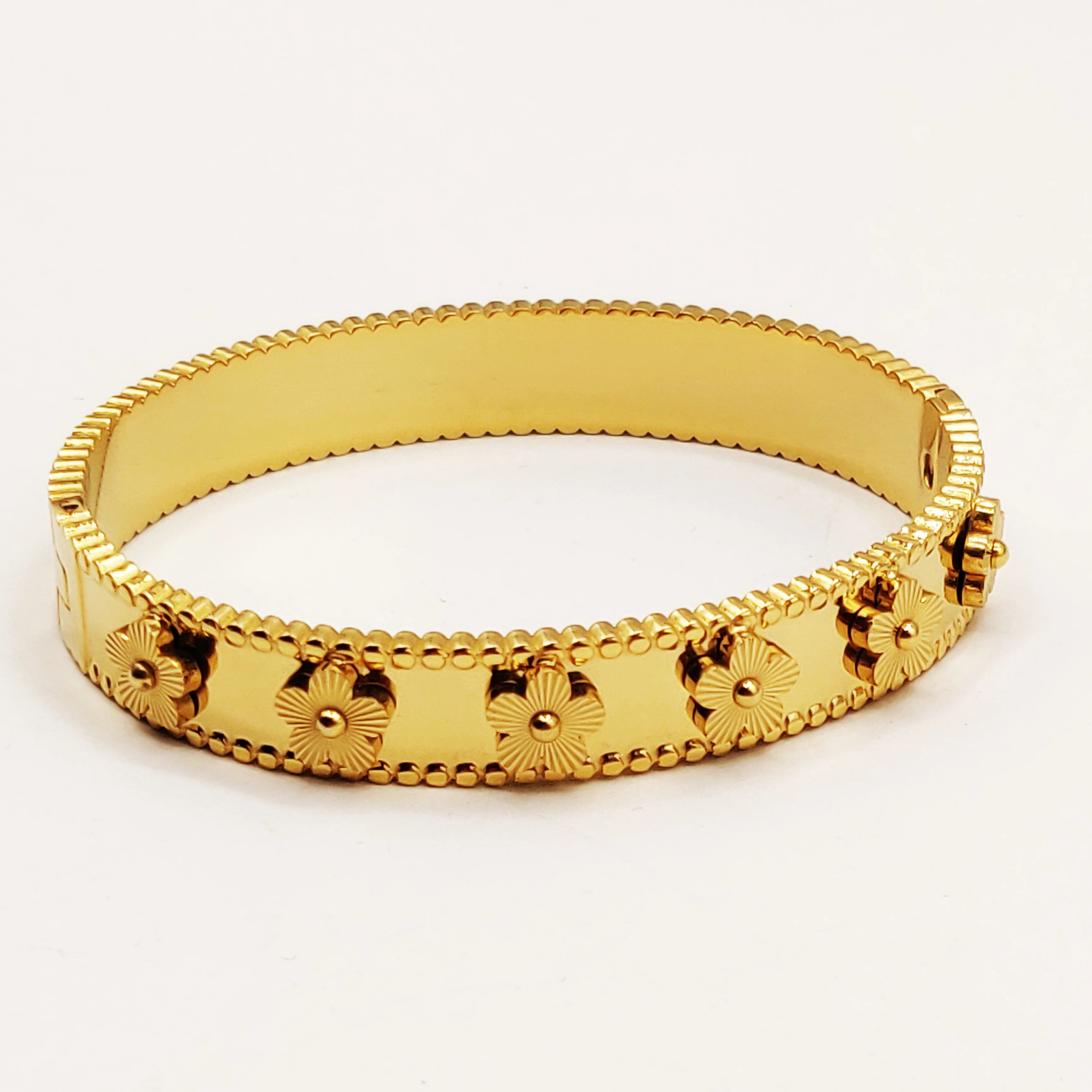 Bracelet Rigide Marguerites Dorées et Noires Luxe